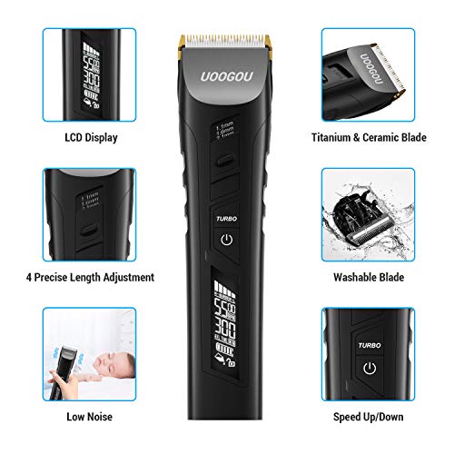 【Pantalla LED Inteligente y Bloqueo de Seguridad】- La pantalla LED puede mostrar la potencia, el númerode revoluciones y el tiempo disponible y el llenado deaceite del cabezal de corte, lo que le permite conocer el estado delcortapelos. Bloqueo de seguridad asegura que los problemas innecesarioscausados por tocar accidentalmente el botón. Cortapelos seguro e inteligente.
