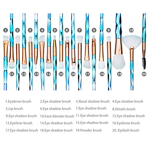 CEPILLO DE MAQUILLAJE DE ESTILO MÚLTIPLE: este conjunto de 20 pinceles de maquillaje incluye pinceles de sombra de ojos, sombra de arrugas, corrector, rubor, base, polvos presionados o sueltos, resaltador y cejas, todos los cuales cumplen con todos tu maquillaje necesita.