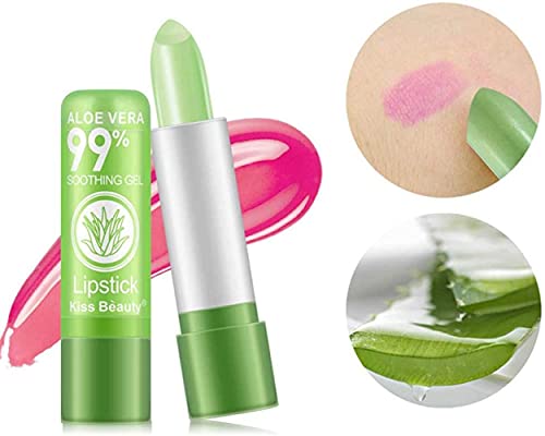 Especificaciones: 3 barras de labios que cambian de color, juego de lápiz labial de aloe, lápiz labial hidratante, maquillaje de labios…