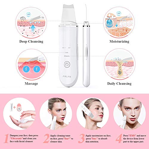 Especificaciones: ANLAN Peeling Ultrasónico Facial Skin Scrubber Exfoliación Facial Ultrasónica Limpiador de Poros para Limpieza Facial y…