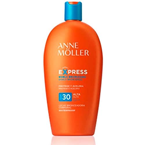EXPRESS leche bronceadora corporal SPF30 de Anne Möller. Leche bronceadora corporal con factor de protección solar alto SPF30. Protege y acelera el bronceado de la piel. Cuenta con un sistema de acción inmediata que estimula la capacidad de acción de la enzima tirosinasa, que es la responsable de la producción de melanina. Con esto se acelera el proceso natural del bronceado. Aplicar antes de la exposición solar y repetir con frecuencia, especialmente después de sudar, bañarse o secarse.