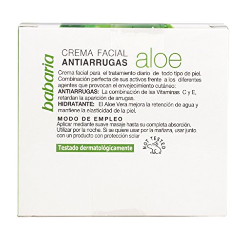 Especificaciones: Babaria – Crema Facial Antiarrugas Nutritiva, con Aloe Vera y Vitaminas C y E, 85% de Ingredientes Naturales, Vegano…