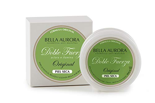Tratamiento Doble Fuerza Crema Aclarante e Iluminador de la piel. Gracias a sus activos ilumina progresivamente y al instante, regenera y se puede aplicar como crema de noche, mascarilla o en partes del cuerpo más secas como codos, rodillas… para nutrir y blanquear la zona. La clásica crema de Bella Aurora con el lema, Para juventud, belleza y lozanía Bella Aurora cada día. Testado bajo control dermatológico.