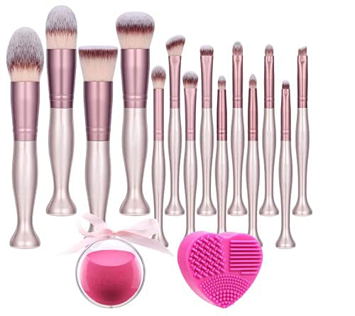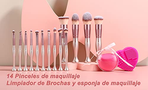 Bellmii® – Set de Brochas de Maquillaje Profesional – Juego de 14 pinceles – Esponja + Limpia Brochas – Cerdas…