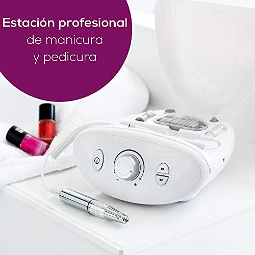 Especificaciones: Beurer MP 100 Estación profesional de manicura/pedicura eléctrica, 10 accesorios de zafiro y fieltro, torno de uñas con…