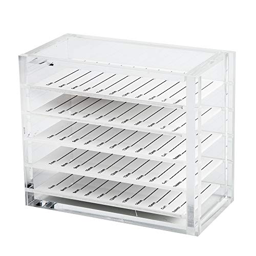 Especificaciones: Caja de almacenamiento transparente de 5 capas, organizador de maquillaje de pestañas postizas, soporte para paletas…