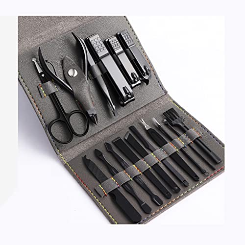 16 Conjuntos de manicura y pedicura completos: incluyendo corajistas de uñas grandes, cortadoras de piel muertas, cortañas de bisel, cortadores de uñas, cortadores de cejas, cuchara para el oído, Pinzas, aguja de cabeza negra, cepillo de limpieza, cortadoras de pedicura diagonal, cortadoras de pedicura plana, cortadoras de pedicura de la media luna, archivo de uñas, el tenedor de la piel muerta, empujador de doble cara, raspador