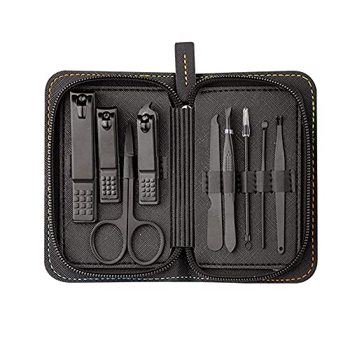 Clipper de uñas Juego de manicura negra de acero inoxidable Conjunto de herramientas de manicura de uñas de 9 piezas…