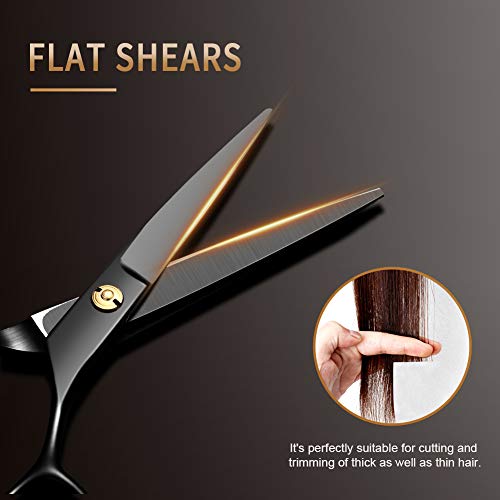 CUCHILLAS AFILADAS: Nuestras tijeras de peluquería están hechas de acero inoxidable duro y sin óxido. Las tijeras con hojas pulidas se pueden utilizar universalmente. Son adecuados para recortar barbas y para el cabello.