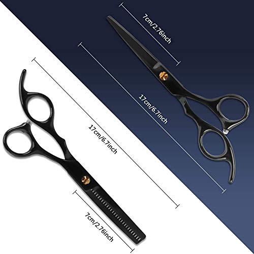 Lo que obtienes: nuestro kit de combinación de tijeras para el cabello incluye 12 piezas: 1 x tijera para cortar el cabello lacio, 1 x tijera para adelgazar el cabello, 1 x tornillo de ajuste, 1 x peine de afeitar, 2 x peine para el cabello, 1 x capa de peluquero, 1 x cabello Cepillo de barrido, 2 pinzas para el cabello, 1 paño de limpieza, 1 bolsa de poliuretano.