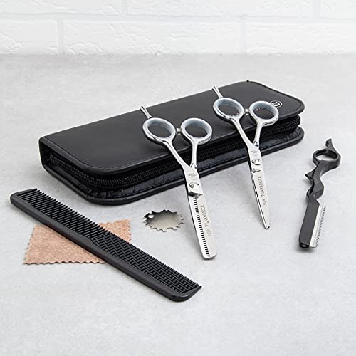 Filarmónica Flow Kit de Peluquero Profesional para el Cabello con Estuche, Peine, Navaja, Tijera de Corte y Esculpir