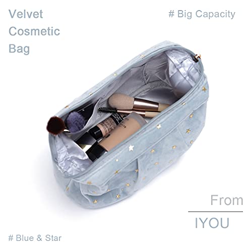 IYOU Moda Terciopelo Bolso de Cosméticos Estrella Azul Maquillaje Bolsas Belleza Organizador Mano Bolsa de sujeción…