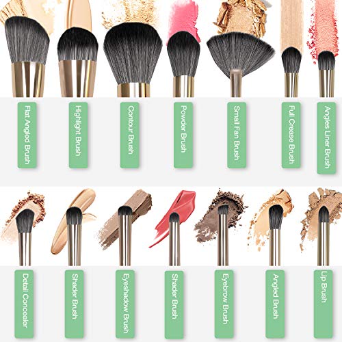 Juego de 14 Pinceles Profesionales de Maquillaje, PTN Brochas de Maquillaje con Bolsa Rodillo PU, Brocha de Maquillaje…