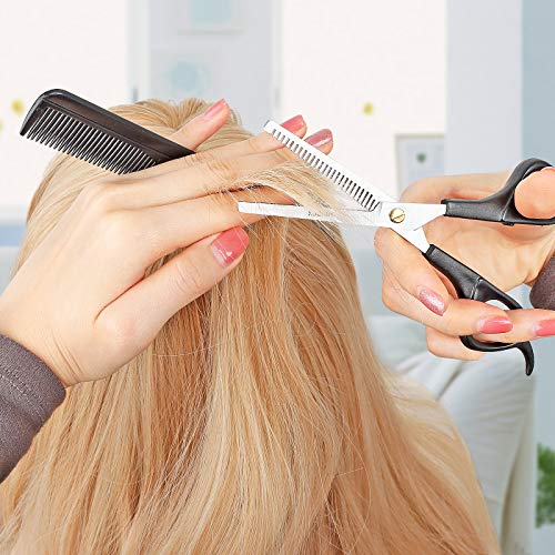 Especificaciones: KUONIIY tijeras de entresacar, tijeras de esculpir de Acero Inoxidable, Kit de Tijeras de Peluquería Profesional y Peine…