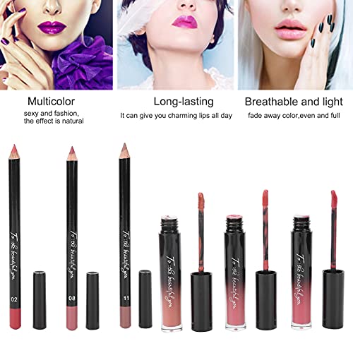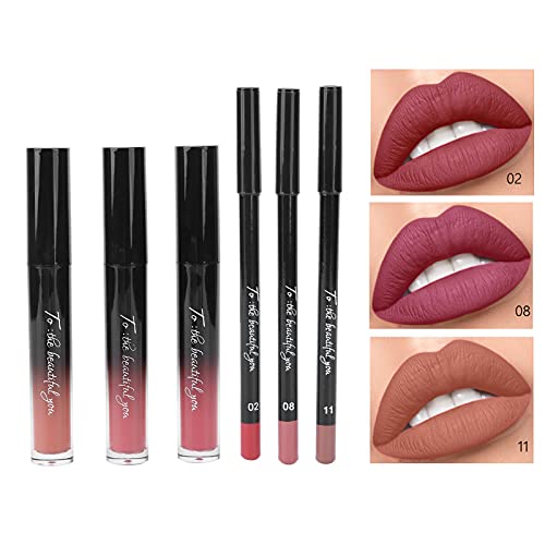 Lápiz Labial Líquido Mate de 3 Piezas + Lápices Delineadores de Labios Juego de Maquillaje Lápiz Labial Impermeable…