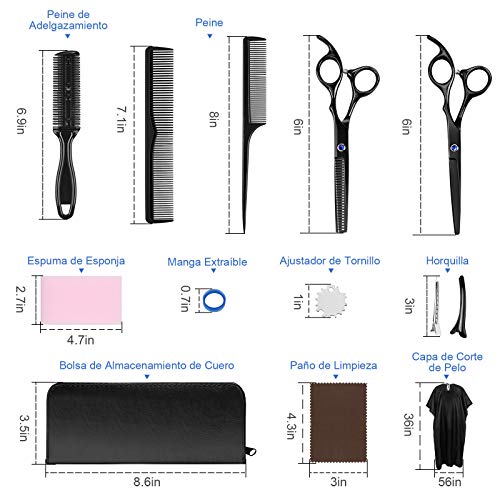 Especificaciones: Lictin Tijeras de Peluquería Profesional-13PCS Juego de Tijeras de Pelo de Acero Inoxidable con Capa de Barbero, Peine…
