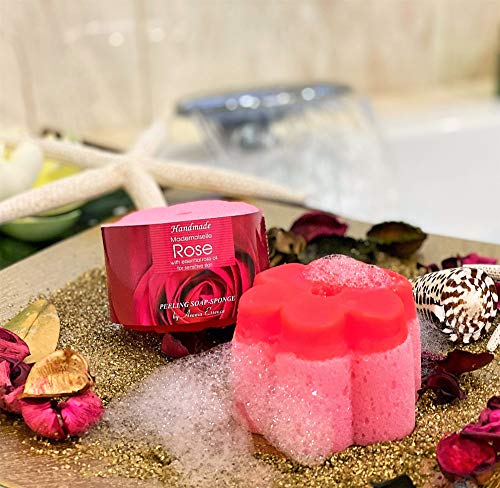 Especificaciones: Mademoiselle Rose – Esponja de jabón natural hecha a mano con aceite de coco, aceite de rosa, vegano, libre de crueldad…
