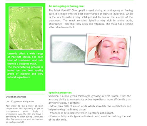 Especificaciones: Mascarilla facial de alginato, Vegan, Peel-off sin aclarado, 200 g Máscara de Menta y Espirulina criogénica