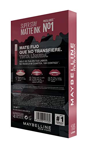 Contenido: 2x Pintalabios SuperStay Matte Ink Maybelline New York, Tono 15 – Lover, Cantidad: 2 x 5 ml