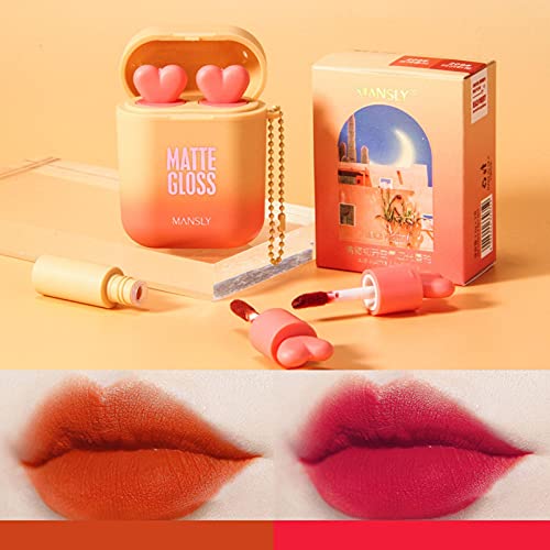 Qians Juego de Maquillaje de lápiz Labial Mate para Dama, Tubo Doble, lápiz Labial para Auriculares, Brillo de Labios…