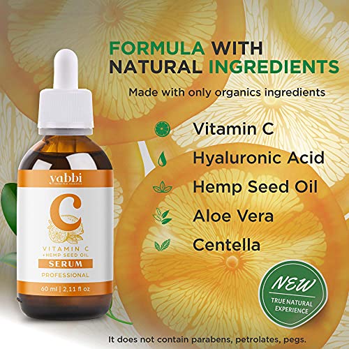 Especificaciones: Serum Vitamina C Facial 60 ml Bio con Acido Hialuronico Puro Aceite de Semillas de Cáñamo Antiedad Antiarrugas y…
