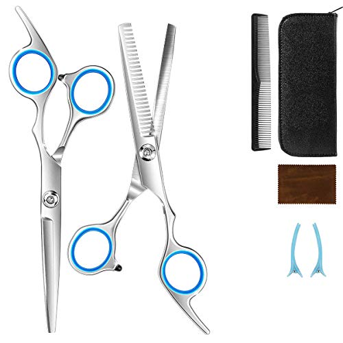 【2 Tipos de Tijeras】 Incluye tijeras de corte y tijeras de adelgazamiento. Tijeras de corte para cabello seco y húmedo, cabello corto, cabello largo. Tijeras de adelgazamiento para hacer que el cabello sea más suave y delicado. Puede satisfacer diferentes necesidades. Equipado con un tornillo ajustable para una tensión adecuada y un uso cómodo. La tensión óptimamente ajustada asegura una apertura y cierre suaves con un corte suave.