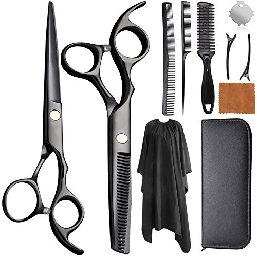TONSOOZE Las tijeras profesionales para el cabello incluyen todo lo que necesita para hacer un corte de cabello profesional o crear un estilo perfecto, las tijeras para adelgazar transformarán su cabello ondulado, grueso y pesado en cabello ligero, elástico y rizado, lo salvará de los costosos recortes de salón al hacer su propio corte en hogar.