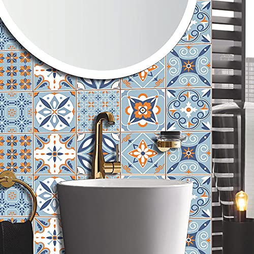 Especificaciones: Vinilos Pared Cocina Mandala Azul Naranja Vinilo Adhesivo Cenefas Adhesivas Baño Cocina Azulejos Decorativos Adhesivos…