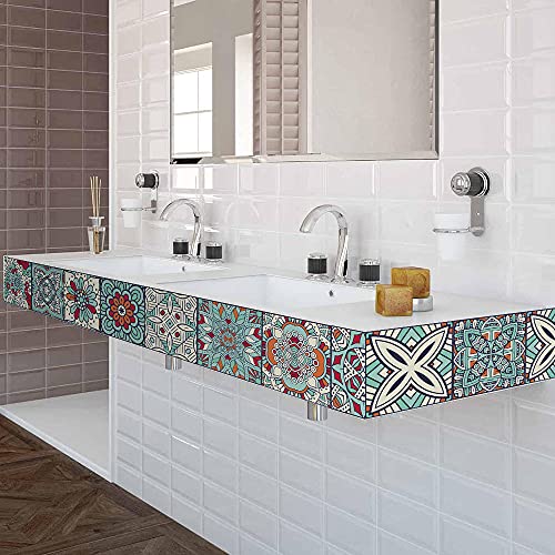 😊Fácil de rasgar y pegar: Los cenefas adhesivas cocina azulejos tienen un adhesivo excelente, se pueden unir fácilmente al azulejo o la pared sin burbujas y se pueden quitar en cualquier momento. Si desea cambiar a otro patrón, puede quitar las pegatinas de azulejos sin romper los escombros en la superficie del material.